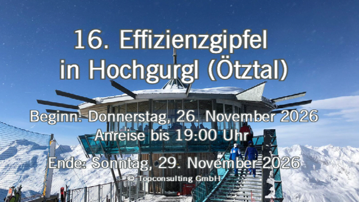 16. Effizienzgipfel in Hochgurgl-Obergurgl (Tirol) im November 2026
